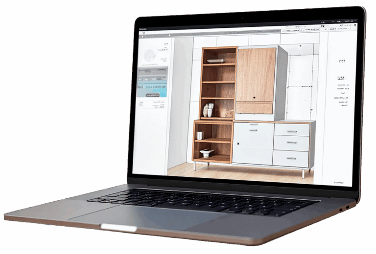 Desenvolva projetos incríveis na nossa plataforma intuitiva. Mostre cada detalhe em 3D para o seu cliente, abra portas e gavetas, e faça alterações em tempo real.